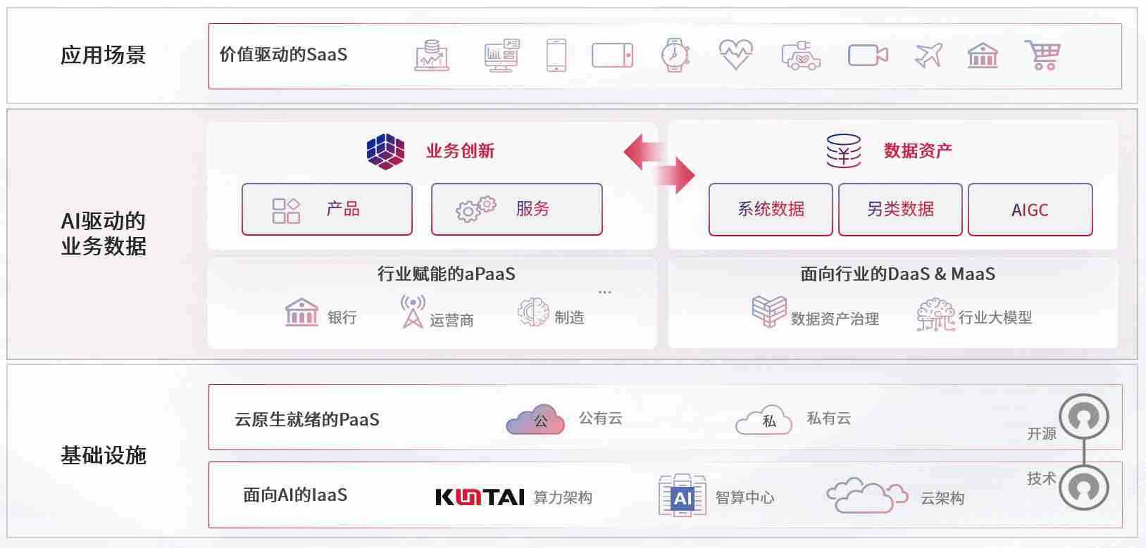 数字时代,,,,围绕企业数字化转型的关键要素,,,,KOO钱包数码开创性的提出数云融合战略和技术体系框架,,,着力在云原生、、、、数字原生、、AI原生和信创产业上架构产品和服务能力,,,,为处在不同数字化转型阶段的快消零售、、、汽车、、、金融、、、、医疗、、、、政企、、、教育、、运营商等行业客户提供泛在的敏捷IT能力和融合的数据驱动能力,,,,构建跨界融合创新的数字业务场景和新业务模式,,,,助力企业级客户建立面向未来的核心能力和竞争优势,,全面推动社会的数字化、、、、智能化转型升级。。